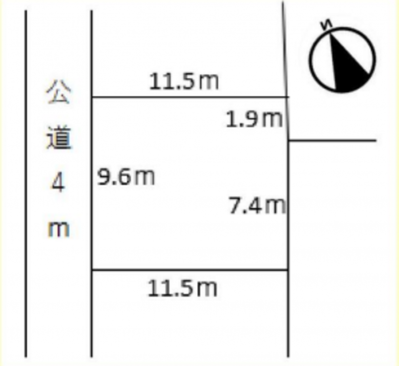 - 北西側 公道4m 間口約9.6m