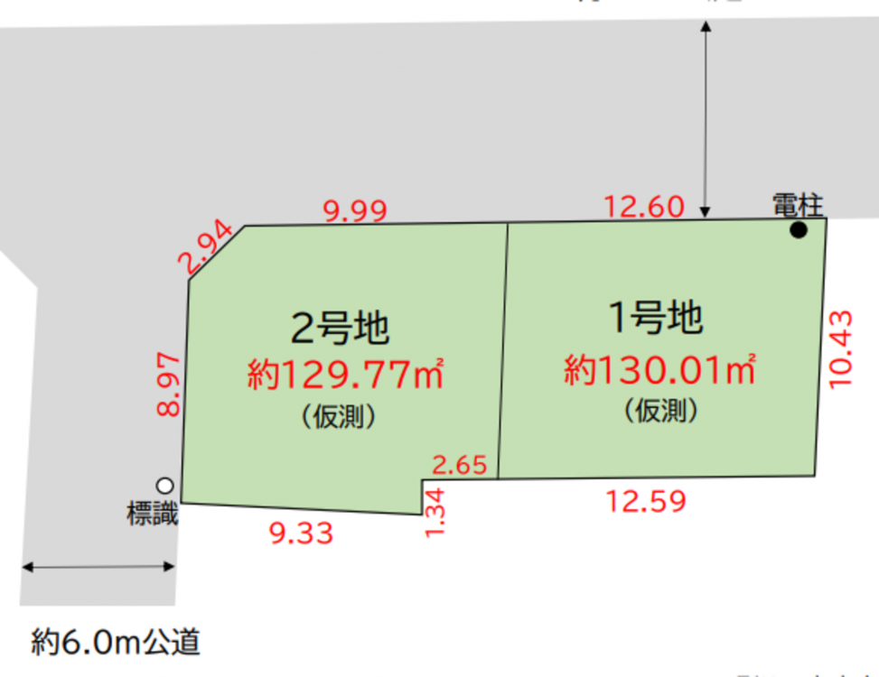 - 北西側 公道8m 間口約12.6m